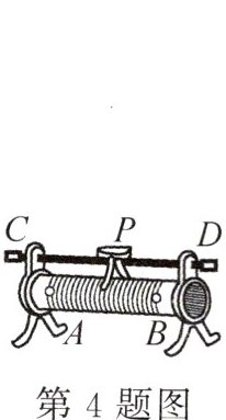 4. (2025·河北保定期中)如图是滑动变阻器的示意图,如果将 C、D 接入电路中,实质相当于接了一个______(选填“导线”或“定值电阻”);将 B、C 接入电路中,滑动变阻器连入电路的电阻丝是______(选填“AP”或“BP”)段,滑片 P 向右滑动,接入电路的电阻将______(选填“变大”“变小”或“不变”).