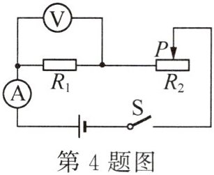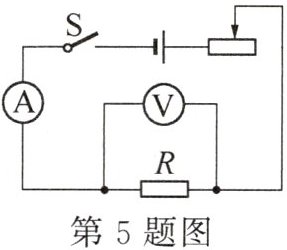 5. 如图,在“探究通过导体的电流与电阻的关系”实验中,有以下器材:电源(电压为6V)、滑动变阻器(30Ω 1A)、电流表(量程为0~0.6A)、电压表、三个定值电阻(5Ω、10Ω、15Ω)、开关和导线若干.要完成实验,需控制定值电阻两端电压的范围为$____V≤U_R≤____V;$若控制定值电阻两端电压为1.5V,要完成实验需更换最大阻值至少为____Ω的滑动变阻器.