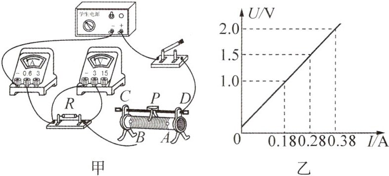 (1) 如图甲,若滑片P向右移时滑动变阻器接入电路的阻值变小,则待接导线应与____(填字母)接线柱相连.