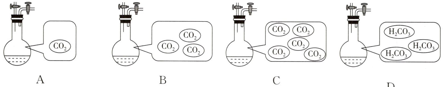 (6)迅速注入烧瓶的液体,使气体的容积减少,造成压强迅速增大 加入水的体积大于溶解的 $ {CO_{2}} $ 体积,所以压强增大