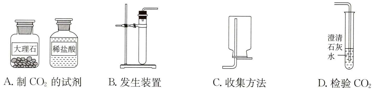 4. A (2023·北京)下列关于CO₂的实验室制取及检验的说法不正确的是 (