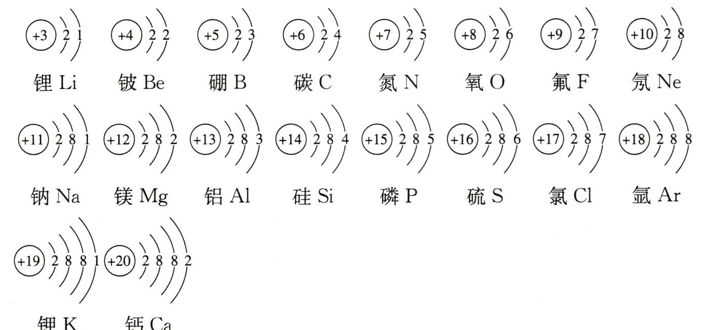 (3)第二层上最多排8个电子。(4)最外层上最多排8个电子。