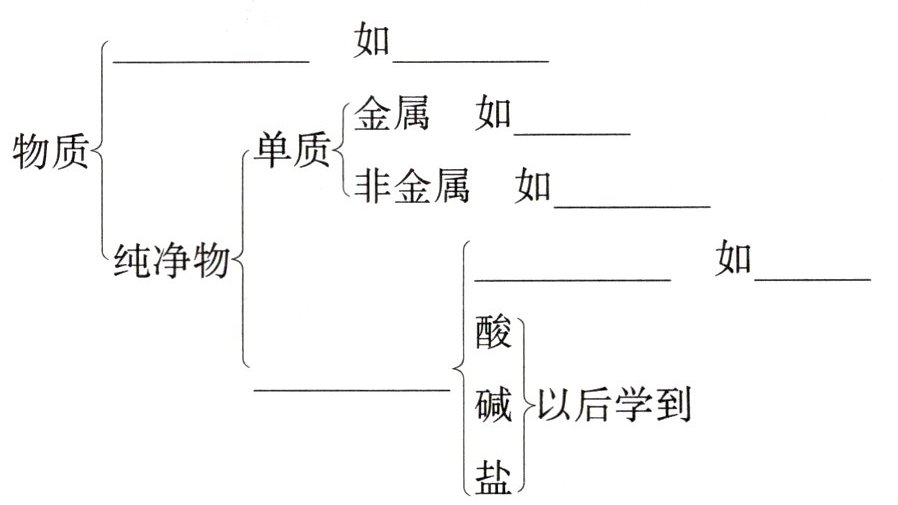 4.一种元素 纯净物 两种或两种以上元素 纯净物 两种元素 氧元素 化合物 混合物 空气 铁 氧气 化合物 氧化物 水