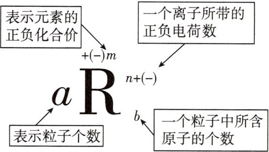 6. 离子符号中右上角的数字,表示每个该离子所带的电荷数。如$S^{2-}$中“2”表示