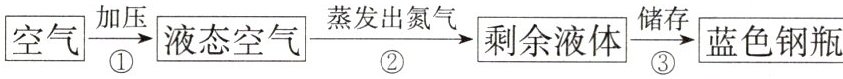 3. A (2024 秋·江苏淮安期中)工业制取氧气主要有下列步骤。将经过除尘、除二氧化碳和除水的空气进行下列操作: