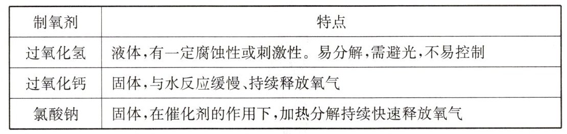(4)氧烛是一种简易制氧机。它体积小、质量轻,贮存期长,产氧量大,适用于在缺氧环境急救。有以下几种制氧剂,根据提供的信息选择一种适合氧烛的制氧剂。