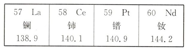 (2)镧元素的质子数是______57______,钕的相对原子质量是______144.2______。