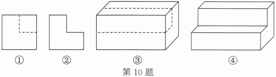 (2) 如图③,将长、宽、高分别为 4,2,2 的长方体砖块,切割掉长、宽、高分别为 4,1,1 的长方体,得到如图④所示的“直角砖块”,若用这样完全相同的“直角砖块”拼成正方体,最少需要多少个?