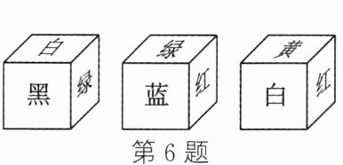 6. 有 3 块正方体积木,每一块的各面都涂上不同的颜色,3 块的涂法完全相同,现把它们摆放成不同的位置(如图),则涂成绿色一面的对面的颜色是 ()