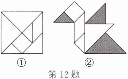 12. (新情境·游戏活动)用边长为1的正方形纸片(如图①)剪出一副“七巧板”,并将其拼成如图②所示的“小天鹅”,则涂色部分的面积是原正方形纸片面积的 ()