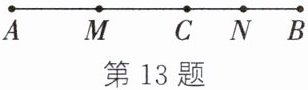 13. (1)如图,线段AB= 8cm,点C在线段AB上,M,N分别是线段AC,BC的中点,求线段MN的长。