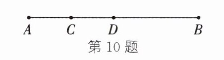 10. 如图,D是线段AB的中点,C是线段AD的中点。若CD= 1,则AB的长为______。