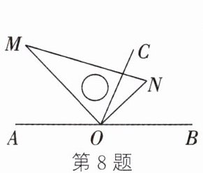 8. 如图,O 为直线 AB 上一点,将三角尺 MON 的直角顶点放在点 O 处. 若 OC 是$∠MOB$的平分线,则下列结论正确的是 ()