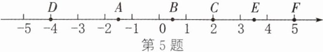 点A:$-1.5$ 点B:$0.5$ 点C:$2$ 点D:$-4$ 点E:$3.5$ 点F:$5$