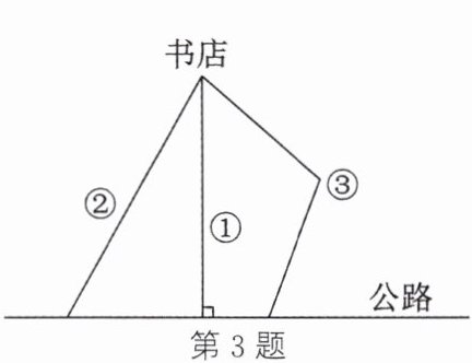 3. 如图,从书店到公路最近的是______号路线,理由是______.