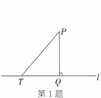 1. 如图,P是直线l外一点,$PQ\perp l$,垂足为Q,T是直线l上的一个动点,连接PT,则下列结论正确的是()