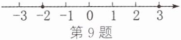 9. 如图,在数轴上表示-2的点与表示3的点之间的距离是 ()