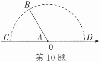 10. 如图,线段$AB$的长为1.21,$A$为数轴上的原点.以点$A$为圆心,$AB为半径画弧得到数轴上的点C和点D$,则点$C$在数轴上表示的数为______,点$D$在数轴上表示的数为______.