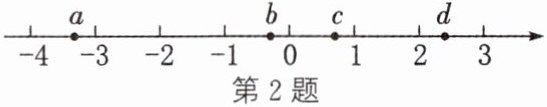 2. (2023·长春)数a,b,c,d在数轴上对应点的位置如图所示,这四个数中绝对值最小的是()