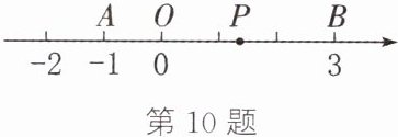 10. 如图,数轴上两点A,B表示的数分别为-1,3,P为数轴上的一个动点,其表示的数为x.