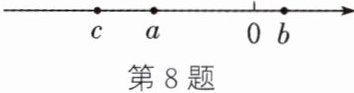 8. 有理数a,b,c在数轴上的对应点的位置如图所示。比较大小:$|c|$______$|b|$,$-a$______b(填“>”“<”或“=”)。