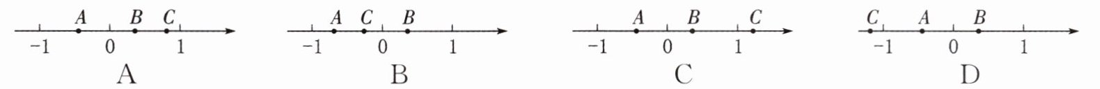 13. (2023·杭州)已知数轴上的点A,B分别表示数a,b,其中$-1\lt a<0,0\lt b<1$.若$a×b= c$,数c在数轴上用点C表示,则点A,B,C在数轴上的位置可能是()
