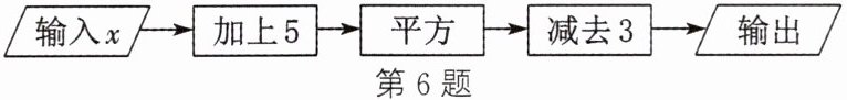 6. 按照如图所示的操作步骤,若输出的值为6,则输入$x$的值为____.