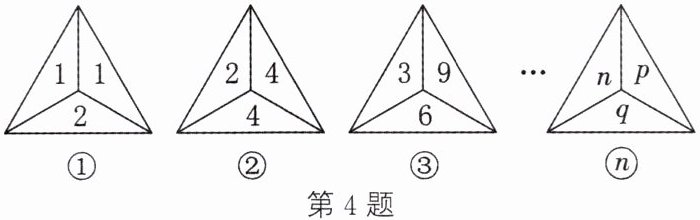 4. 如图,根据图中数的规律可知,第ⓝ个图中的$q= $____,$p= $____(用含$n$的代数式表示).