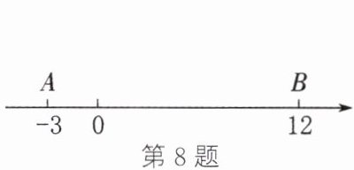 8. (分类讨论思想)(2024·威海)如图,在数轴上,动点A从表示-3的点出发,以1个单位长度/秒的速度沿着数轴的正方向运动.同时,动点B从表示12的点出发,以2个单位长度/秒的速度沿着数轴的负方向运动.经过______秒,点A,B之间的距离等于3个单位长度.