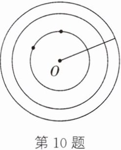 10. (新情境·现实生活)(2023·娄底)如图,若干名同学参加课后社团——舞蹈活动,一次排练中,先到的n名同学均匀排成一个以点O为圆心,r为半径的圆圈(每名同学对应圆周上一个点),又来了两名同学,先到的同学都沿各自所在半径往后移a米,再左右调整位置,使这$(n+2)$名同学之间的距离与原来n名同学之间的距离(即在圆周上两人之间的圆弧的长)相等.这$(n+2)$名同学排成圆圈后,又有一名同学要加入队伍,重复前面的操作,则每人须往后移______米(请用含a的代数式表示),才能使得这$(n+3)$名同学之间的距离与原来n名同学之间的距离相等.
