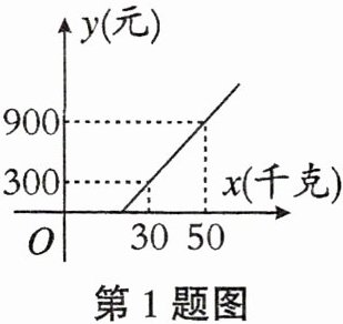 1. 某航空公司规定,旅客乘机携带行李的质量$x$(千克)与其运费$y$(元)由如图所示的一次函数图象确定,则旅客可免费携带行李的最大质量为(