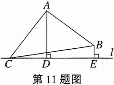 11. 如图,$C$ 为直线 $l$ 上的一个动点,$AD\perp l$ 于点 $D,BE\perp l$ 于点 $E$,点 $E$ 在点 $D$ 的右侧,并且点 $A,B$ 在直线 $l$ 同侧,$AD = DE = 8,BE = 2$.当 $CD$ 的长为