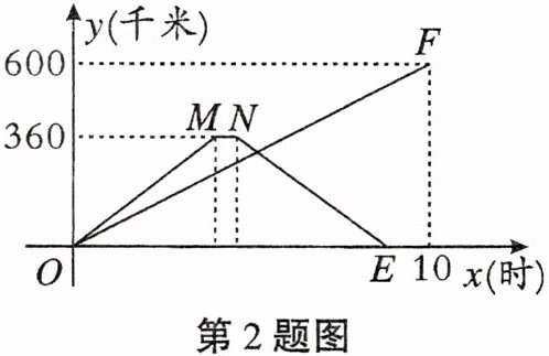 2. (2025南开中学期末)在一条公路上依次有A,B,C三地,甲车从A地出发,驶向C地,同时乙车从C地出发驶向B地,到达B地停留0.5小时后,按原路原速返回C地,两车匀速行驶,甲车比乙车晚1.5小时到达C地.两车距各自出发地的路程y(千米)与时间x(时)之间的函数关系如图.