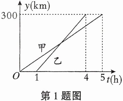 1. (2025沙坪坝区月考)甲、乙两车从A城出发匀速驶向B城,在整个行驶过程中,两车离开A城的距离$y(km)与甲车行驶的时间t(h)$之间的函数关系如图,则下列结论正确的个数为 (