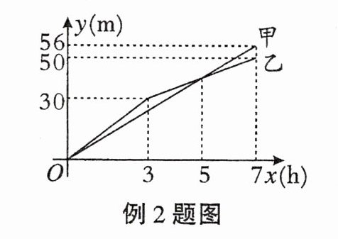 例2 甲、乙两个工程队分别同时开挖两段河渠,所挖河渠的长度$y(m)$与挖掘时间$x(h)$之间的关系如图所示,则下列说法错误的是 (