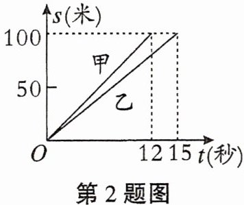 2. 甲、乙两人在一次百米赛跑中,路程s与时间t的关系如图所示,则下列说法错误的是 (