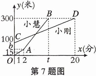 7. 小刚与小慧两人相约登东舰峰,人距地面的高y(米)与登山时间x(分)之间的函数图象如图所示,根据图象所提供的信息解答下列问题: