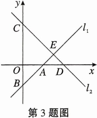 3. 如图,已知直线$l_1:y = kx - 2与直线y = x$平行,与x轴交于点A,与y轴交于点B. 直线$l_2$与y轴交于点$C(0,4)$,与x轴交于点D,与直线$l_1交于点E(3,m)$.
