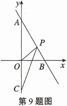 9. 如图,在平面直角坐标系中,直线$y = -2x + 4$与y轴、x轴分别交于点A,B,P为直线$y = -2x + 4$位于第一象限内的一点,已知点C的坐标为$(0,-3)$.