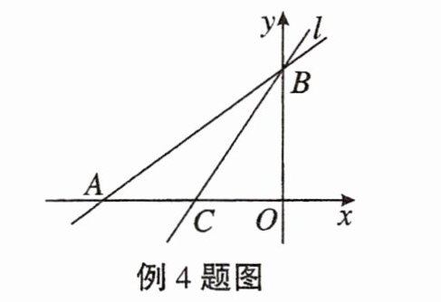 例4 如图,一次函数$y = \frac{3}{4}x + 6$的图象与x轴、y轴分别交于点A,B,过点B的直线l平分$\triangle ABO$的面积,则直线l的函数表达式为(