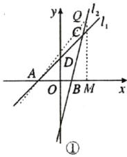 (2)过点$M(t,0)$作垂直于x轴的直线,与直线$l_2$交于点Q,连接AQ,$\therefore Q(t,4t - 4)$。在$y = x + 2$中,当$y = 0$时,$x = -2$,$\therefore A(-2,0)$,$\therefore S_{\triangle ABC} = \frac{1}{2} × 3 × 4 = 6$,$\therefore S_{\triangle AQC} = 2S_{\triangle ABC} = 12$。当点Q在点C的上方时,如图①