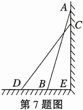 7. 如图,一架长25米的梯子,斜靠在竖直的墙上,这时梯子的底端离墙7米。