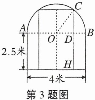 3. 一辆装满货物,宽为2.4米的卡车,欲通过如图所示的隧道(上部分为半圆形,下部分为长方形),则卡车的外形高必须低于 (