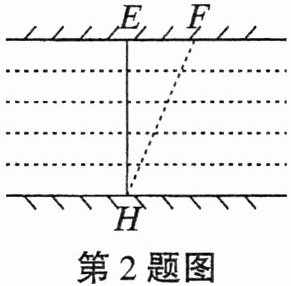 2. 如图,小明欲控制遥控轮船匀速垂直横渡一条河,但由于水流的影响,实际上岸地点F与欲到达地点E相距10米,结果轮船在水中实际航行的路程HF比河的宽度EH多2米,则河的宽度EH是 (