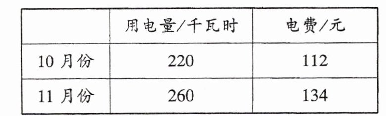 例2 为了鼓励市民节约用电,某市对居民用电实行“阶梯收费”(总电费$ = 第一阶梯电费 + 第二阶梯电费 + $第三阶梯电费). 规定:月用电量不超过180千瓦时按第一阶梯的电价收费,月用电量超过180千瓦时且不超过280千瓦时的部分按第二阶梯电价收费,月用电量超过280千瓦时的部分按第三阶梯电价收费,其电价是第一阶梯电价的160%. 李磊家2023年10月份和11月份的用电量及这两个月所交的电费如下表所示: