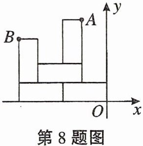 8. 用大小完全相同的长方形纸片在直角坐标系中摆成如图所示的图案,已知点A的坐标为$(-1,5)$,则点B的坐标是(