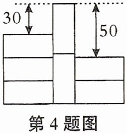 4. 如图所示是由截面为同一种矩形的墙砖粘贴的部分墙面,其中三块横放的墙砖比两块竖放的墙砖低30cm,两块竖放的墙砖比两块横放的墙砖高50cm,则每块墙砖的截面面积是
