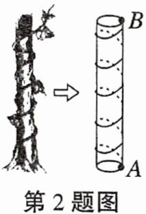 2. 我国古代有这样一个数学问题,大意是:如图,把枯木看作一个圆柱,该圆柱的高为20尺,底面周长为3尺,有葛藤自点A处缠绕而上,缠绕五周后其末端恰好到达顶点B处,则葛藤的最短长度是______尺。