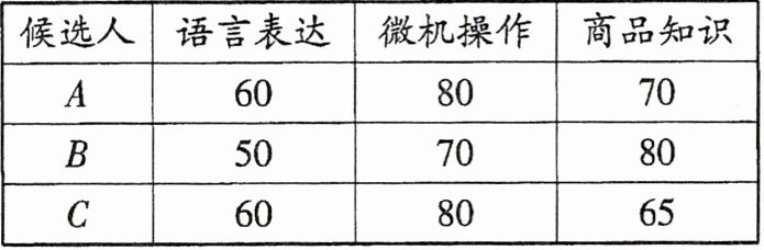 如果语言表达、微机操作和商品知识的成绩按30%,30%,40%计算,那么谁将会被录取?