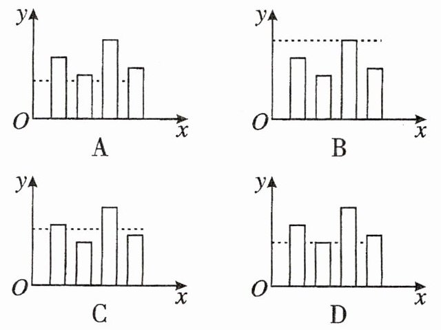 4. 夏季我们不能单独去陌生的水域游泳. 巡逻队测量了某水域4个不同地方的水深情况,则下列图中虚线位置能大致表示该水域平均深度的是 (